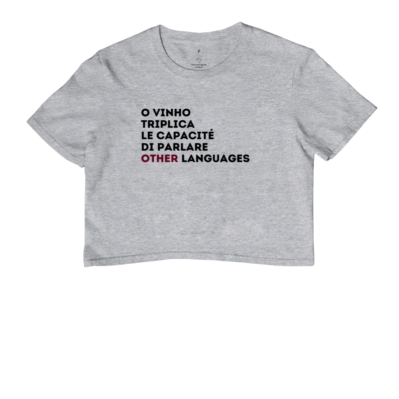 Esta estampa humorística apresenta a frase "O VINHO TRIPLICA LE CAPACITÉ DI PARLARE OTHER LANGUAGES" em uma combinação de idiomas, destacando o efeito divertido do vinho sobre a habilidade de falar outras línguas. As palavras são dispostas em uma tipografia clara e moderna, com "OTHER" em vermelho, criando um contraste visual que atrai a atenção. Este design é perfeito para amantes de vinho que apreciam um toque de humor e a ideia de que o vinho pode facilitar a comunicação internacional. Ideal para camisetas, esta estampa é uma maneira divertida de expressar a apreciação pelo vinho e a linguagem.