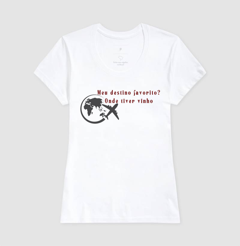 Para os apaixonados por vinho e viagens, esta estampa traz a frase 'Meu destino favorito? Onde tiver vinho'. Perfeita para quem adora explorar vinícolas pelo mundo e fazer do vinho o mapa das suas melhores aventuras. Um toque de humor e estilo para os verdadeiros wine lovers.