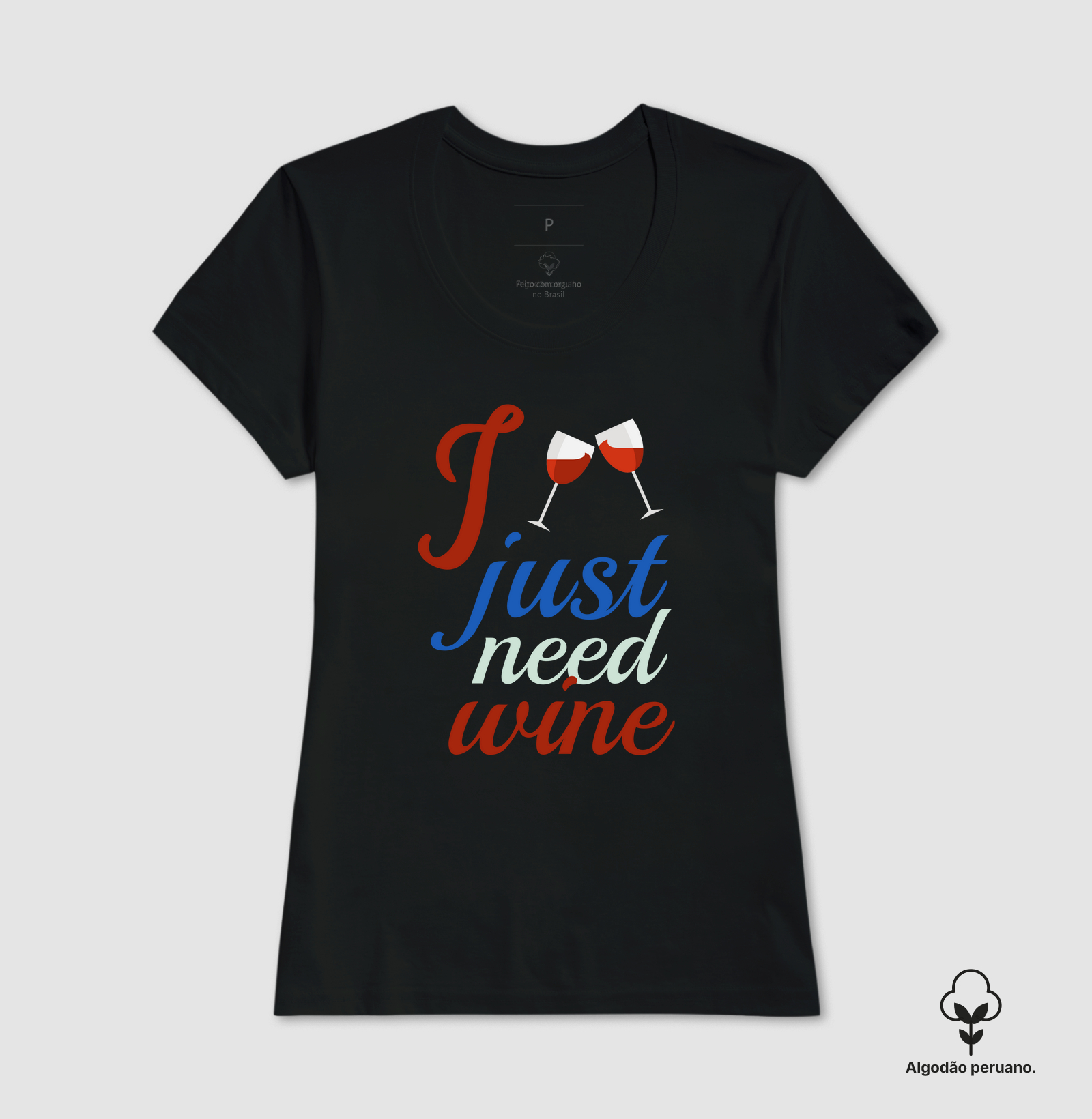 A estampa "I Just Need Wine" é perfeita para aqueles momentos em que tudo o que você realmente precisa é de uma boa taça de vinho. Com uma tipografia moderna e descontraída, além de duas taças brindando no topo, essa camiseta é uma ótima maneira de expressar seu amor pela bebida de forma leve e divertida. Ideal para usar em festas, encontros com amigos ou até mesmo no conforto de casa, essa peça é feita para quem sabe que o vinho é sempre a melhor solução!