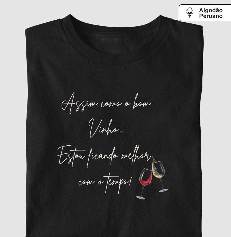 A estampa "Melhor com o Tempo" é para aqueles que, assim como um bom vinho, só melhoram com os anos. Com a frase inspiradora "Assim como o bom vinho... Estou ficando melhor com o tempo" acompanhada por duas taças em um brinde elegante, essa camiseta é a escolha perfeita para os amantes de vinho que valorizam a maturidade e a evolução. Seja para celebrar um aniversário, uma conquista pessoal ou simplesmente para expressar sua confiança e paixão pelo vinho, essa peça é ideal para qualquer ocasião.