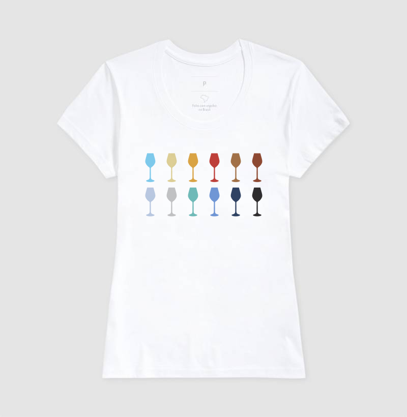 Esta estampa criativa e moderna apresenta uma coleção de taças de vinho estilizadas, cada uma com uma cor vibrante e única. Perfeita para amantes de vinho que adoram expressar sua paixão de forma colorida e descontraída, esta camiseta traz um toque de elegância minimalista que combina com qualquer ocasião. Ideal para quem sabe que o vinho é uma experiência visual e sensorial!