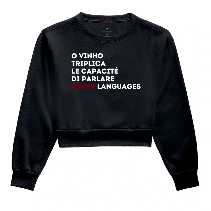 Esta estampa humorística apresenta a frase "O VINHO TRIPLICA LE CAPACITÉ DI PARLARE OTHER LANGUAGES" em uma combinação de idiomas, destacando o efeito divertido do vinho sobre a habilidade de falar outras línguas. As palavras são dispostas em uma tipografia clara e moderna, com "OTHER" em vermelho, criando um contraste visual que atrai a atenção. Este design é perfeito para amantes de vinho que apreciam um toque de humor e a ideia de que o vinho pode facilitar a comunicação internacional. Ideal para camisetas, esta estampa é uma maneira divertida de expressar a apreciação pelo vinho e a linguagem.