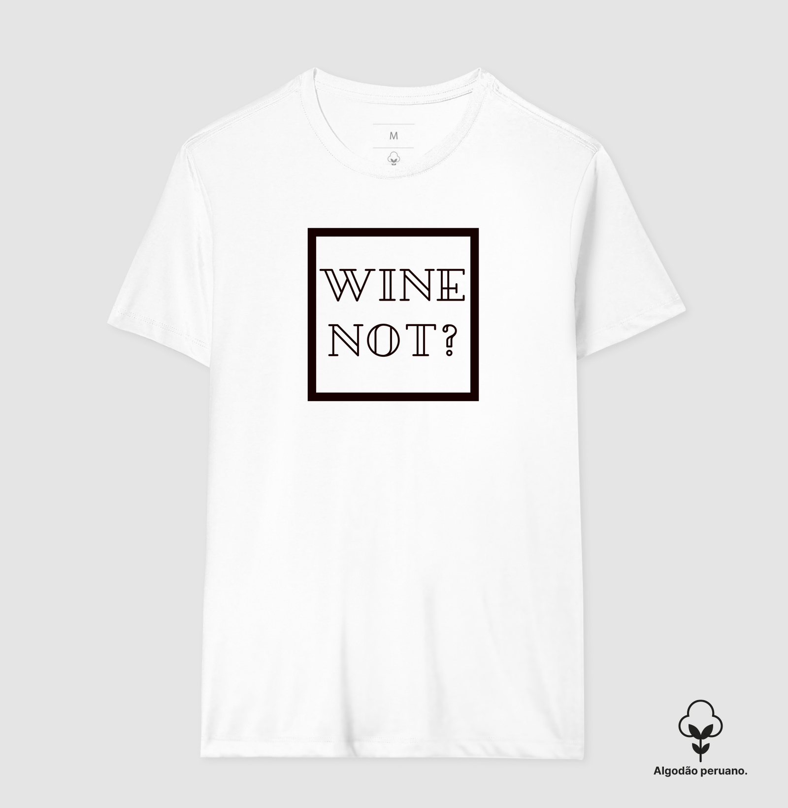 Esta camiseta apresenta uma estampa elegante e espirituosa com a frase "WINE NOT?" em destaque dentro de um retângulo minimalista. Ideal para os amantes de vinho que gostam de um toque de humor em seu estilo, esta peça é perfeita para ocasiões descontraídas e sociais, mostrando sua paixão pelo vinho de forma divertida e sofisticada.